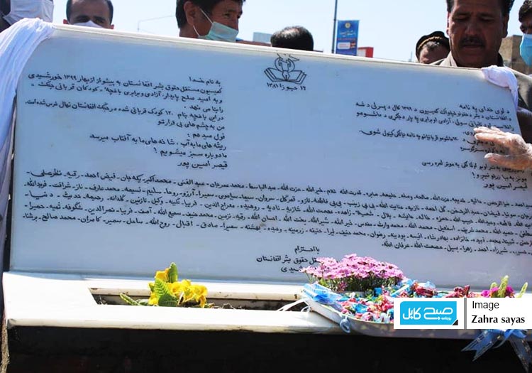 در گوشهی دیگری از این برنامه، رونمایی از سنگ نوشتهای شد که در آن نام ۱۲۰ تن از کودکان قربانی حک شده و هر از گاه با عبور از این جاده، همه را به یاد کودکان مظلوم و قربانی بیندازد که در کشور فلاکتزدهی افغانستان با تمام آرزوهای شان زیر خاک شدند.